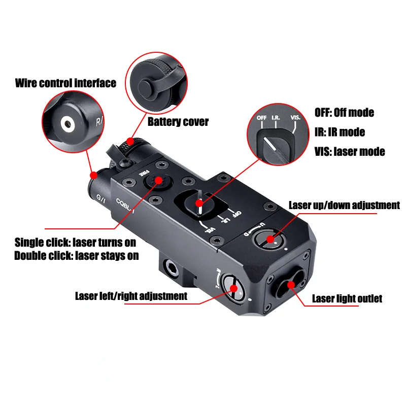 This tactical sight integrates red/green/blue laser and IR light. It has multi-mode and multi-function. The laser spot is adjustable, effectively ensuring the accuracy of aiming. The package contains all accessories without any additional cost. For OEM, ODM, and wholesale, please contact us by email. We will reply to you in 24 hours. Tips for Buying Red/Green/Blue Laser IR Laser 20mm Rail Zero Adjustment With Stay-on Mode External Switch Specifications