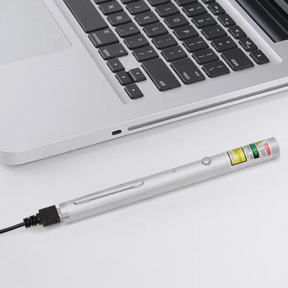In 2025, we developed many USB laser pointers, and this design is the most popular. The beam is bright with a low divergence angle, and the laser spot is visible at a long distance in daylight. The capacity of the built-in battery is 280mAh, and it can work continuously for a long time. The USB interface has been improved, which makes charging faster and safer. When the laser pen is charging, a small red LED will light up, and the power supply will automatically shut off to prevent overcurrent or overvoltage. It adopts the thermistor and temperature control chip to ensure that the laser pen works at ideal operating temperatures. Compared to other similar products, this model is a cheap laser pointer pen with lots of internal protections, and the prices are the lowest we can provide. Features Technical Parameters