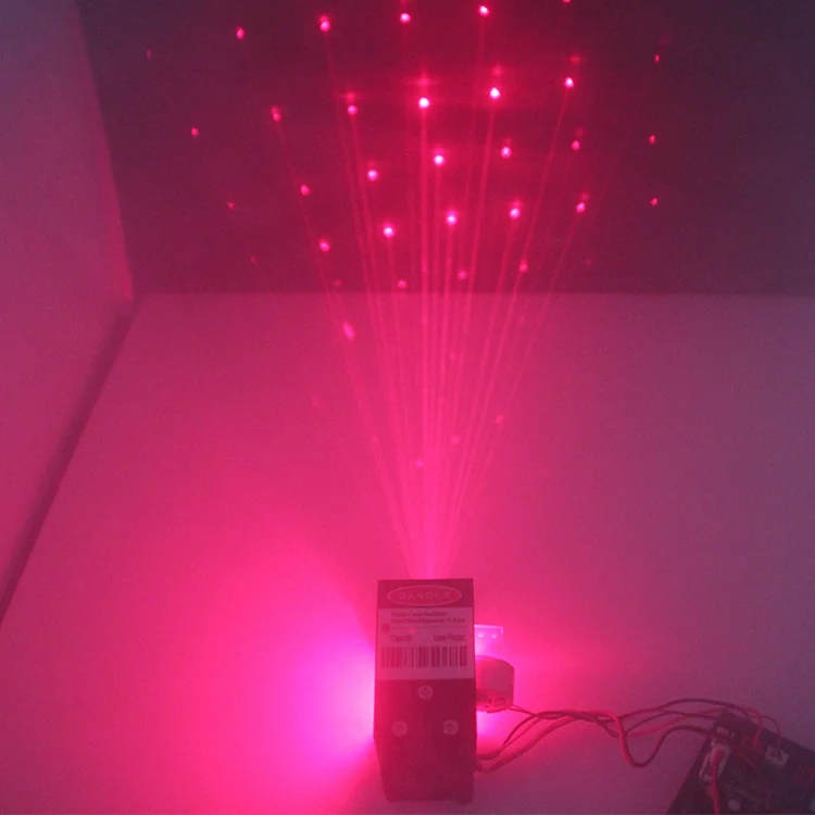 This multi-beam laser module has a high-power diode, high-efficiency circuits, and the best internal structure. It adopts an intelligent control circuit, a high transmittance optical system, and a heat sink design, effectively increasing practicality and durability. The multiple red laser beams are bright and stable. This model can be used in stage, bar, KTV, Christmas, etc. Specifications