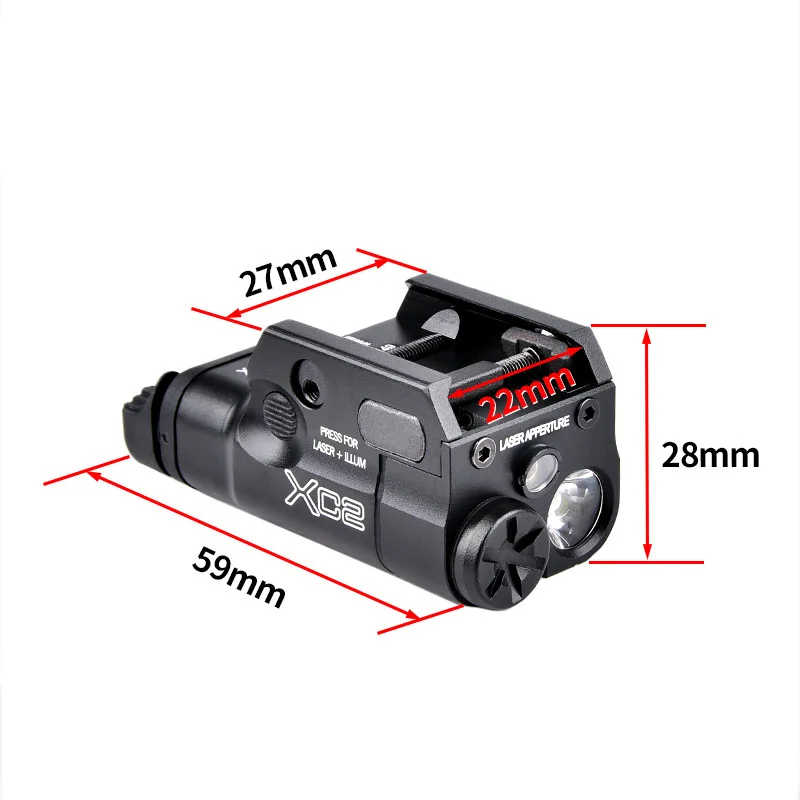 This laser flashlight has an optional green/red laser. It fits the 20mm rail and is mountable for pistols as a laser sight. A stay-on switch is available, so you don't need to keep pressing the switch. This model is recommended if you are looking for a durable and mountable laser sight for a pistol. For OEM, ODM, and wholesale, please contact us by email. We will reply to you in 24 hours. Specifications