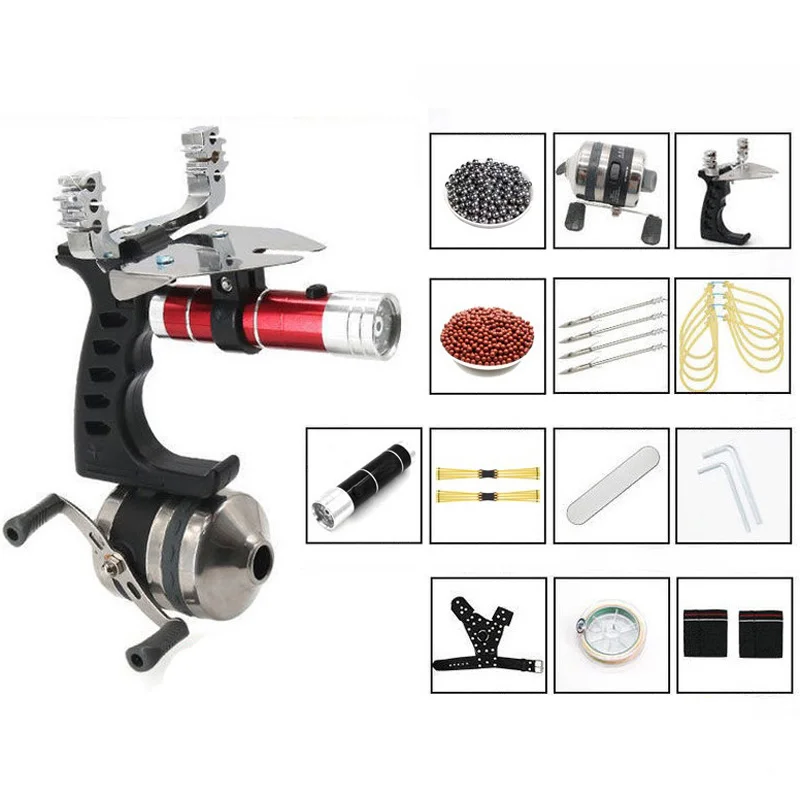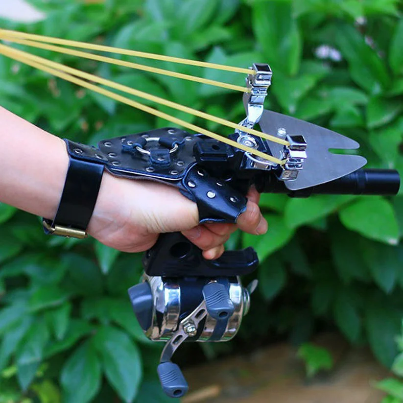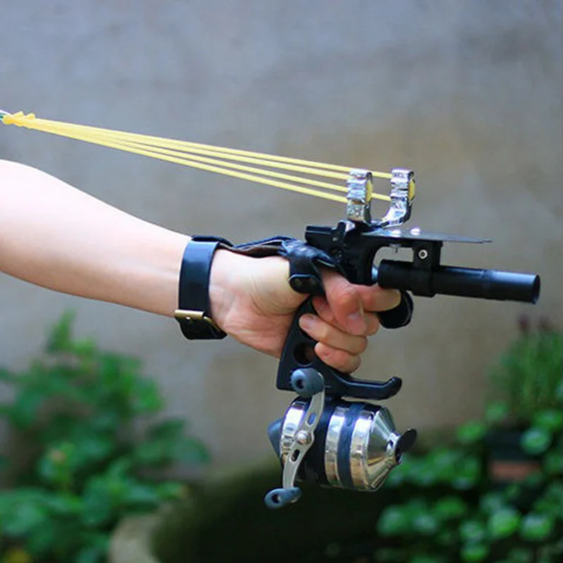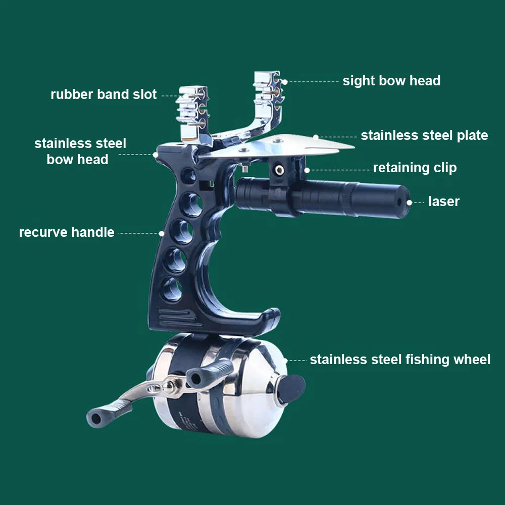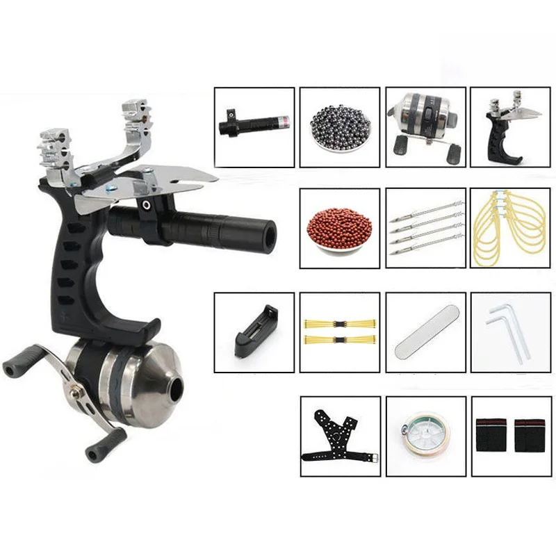 This slingshot is cheap and high-precision, ideal for fishing. It uses a multi-point bow head, integrated fishing reel, metal handguard, and laser sight. All accessories are available. The red/green laser is optional - you can choose based on your needs.