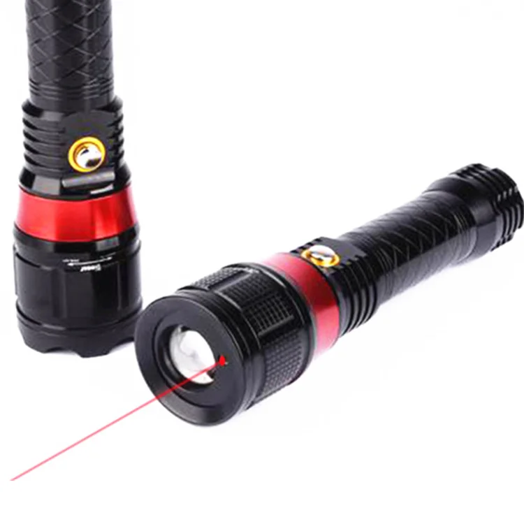 High Brightness and Rechargeable LED Torch with Red Laser Pointer