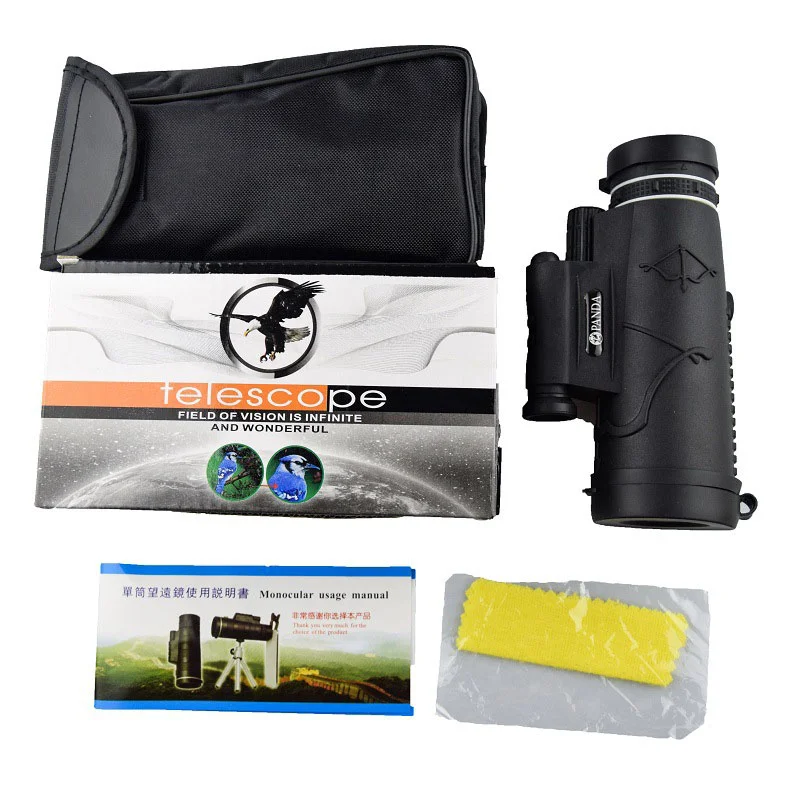 This telescope comes with small sizes, high definition, and 12x magnification. The vision is clear and bright with a 50mm large objective lens. With LED light auxiliary lighting, night shooting is better. You can adjust the exit pupil distance by rotating the eyecup to get a comfortable view, even with glasses on. A tripod and a phone clip are optional - you can choose according to your needs. Features Specifications