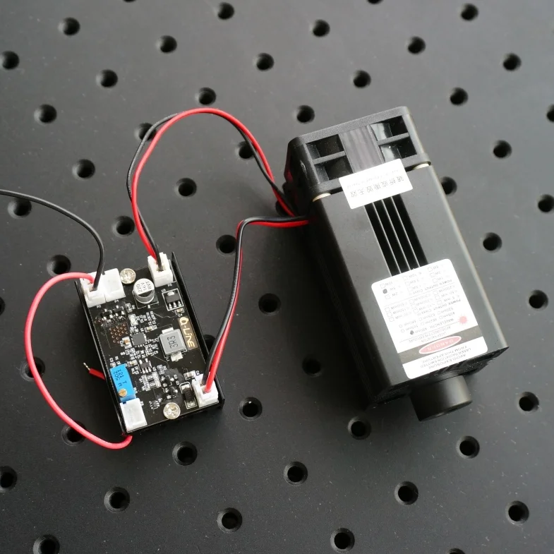 This model is one of our most powerful blue laser modules, with low prices and high stability. With an external DC port and power cords, you just need to connect the 12V power supply, and this module will be able to emit the laser beam. If the power supply is on, this laser can work continuously and has no time limit. With a forced cooling fan and temperature control system, you do not need to worry about overheating. Technical Parameters