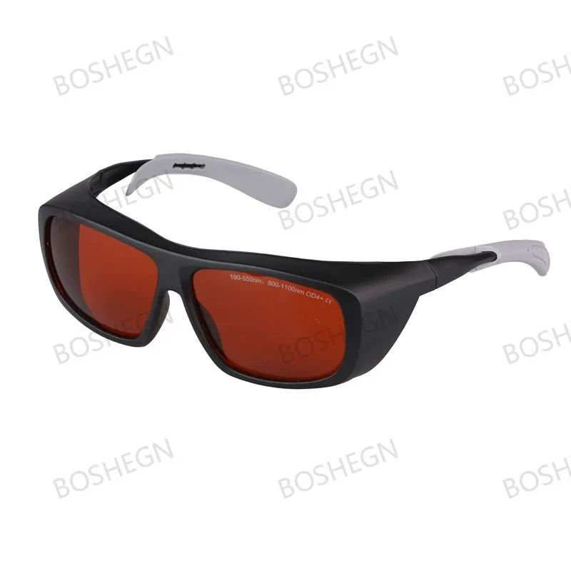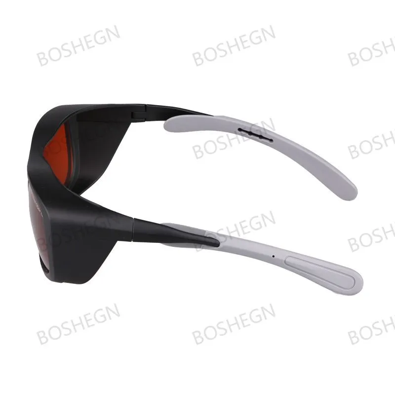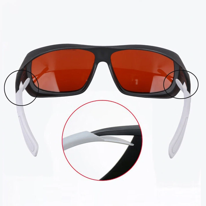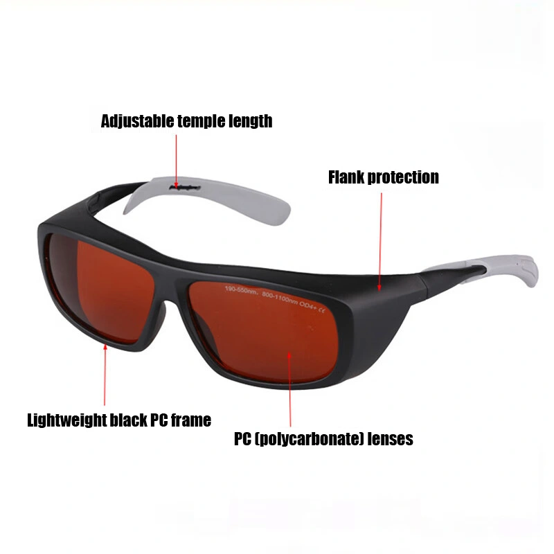 These safety protective goggles are professional and durable. They provide effective protection against violet, blue, green, and infrared lasers. Absorption lens Adjustable temple length Side wing and brow ridge protections PC frame and PC lens Why should we wear laser goggles? Specifications