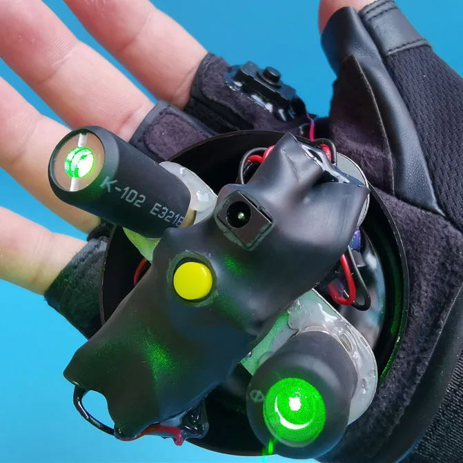 These laser gloves come with vortex visual design, high-power modules, and circuit optimization. Different laser types are optional: red & green, double green, double red, double blue, double purple, red & blue, blue & green, red & purple. The vortex style is rare on the market, and the production cost is relatively high. This product is ideal for parties, stage effects, magic shows, performances, nightclubs, street dancing, etc. It is a perfect tool to create an atmosphere and interact with the audience. The finger modules of all our laser gloves are customizable. You can choose 1-5 green/red/blue/violet finger laser modules. For product customizations, please contact us by email. We will reply to you within 24 hours. Specifications Tips for Use