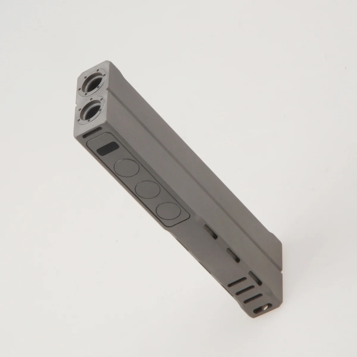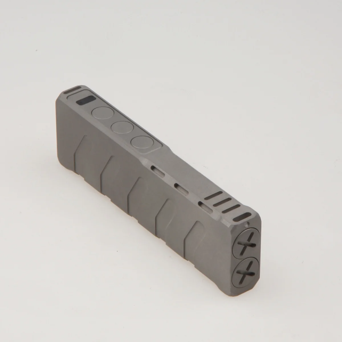 The product housing adopts a simple square design with a stonewashed style. It has integrated a high-power 405nm laser and a high-brightness LED. There are three versions: version 1 (not suitable for tritium vials), version 2 (19 slits for tritium vials), and version 3 (21 slits for tritium vials).