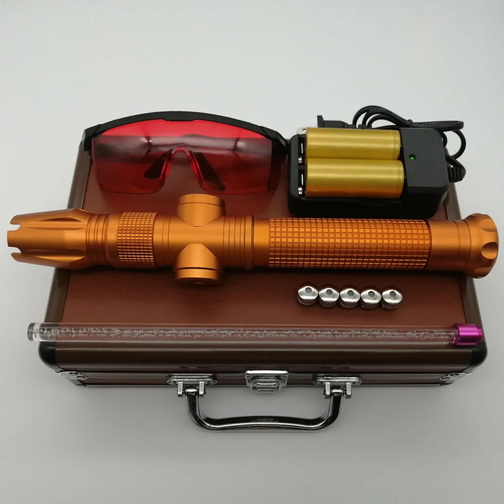 To meet the needs of high-end customers, we have developed this professional laser pointer. We use the best materials and overdriving technology to achieve an output power greater than 2200mW, making it the market's most powerful green laser pointer. It has an efficient heat dissipation system, so you don't need to worry about the diode's useful life. The green laser is long-range, bright, and stable (520nm is more stable than 532nm). The internal structure has been improved, with circuit protections, overheating protections, and an anti-shock design. All accessories are included: battery, charger, pattern heads, laser safety goggles, laser sword, etc. If you're looking for the world's most powerful green laser pointer, this model will be a reliable choice. For wholesale, OEM, and any questions, you can contact us via email. We will reply to you in 48 hours. Specifications Notes
